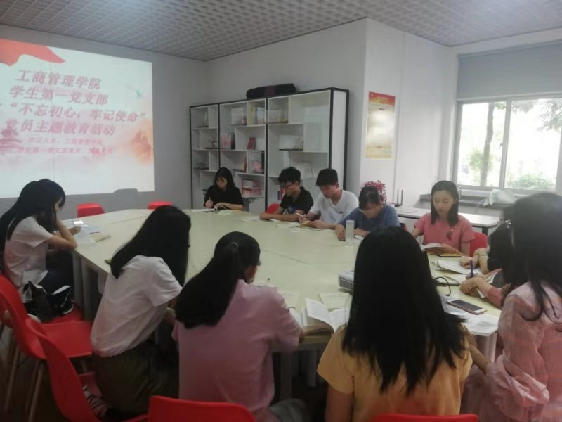 工商管理学院学生第一党支部于10月17日下午开展了“不忘初心、牢记使命”主题教育第四次专题学习会,学习了《习近平新时代中国特色社会主义思想学习纲要》第三章“坚持以人民为中心”的内容,并交流了学习习近平总书记在庆祝中华人民共和国成立70周年大会上的重要讲话精神的心得体会。