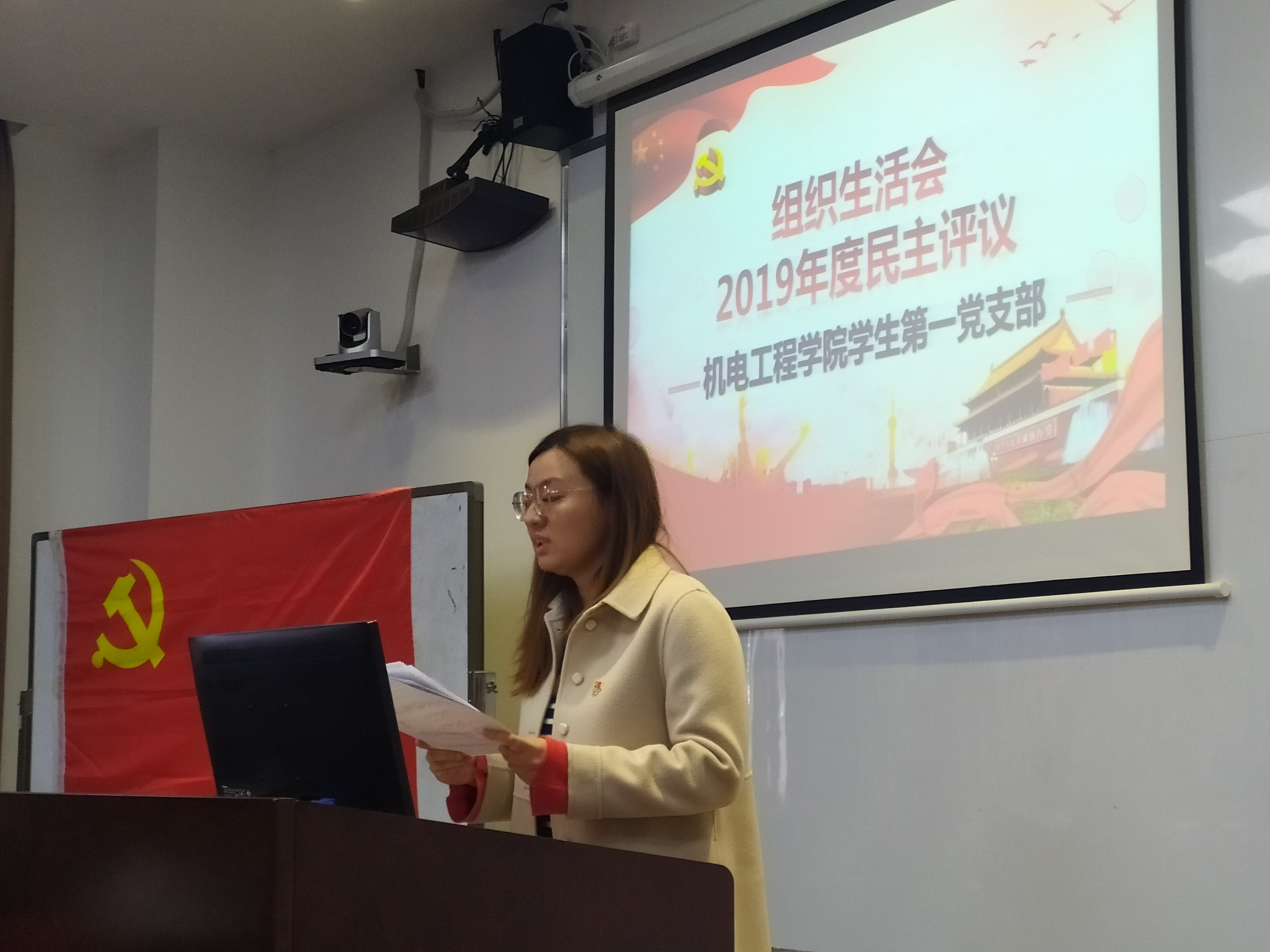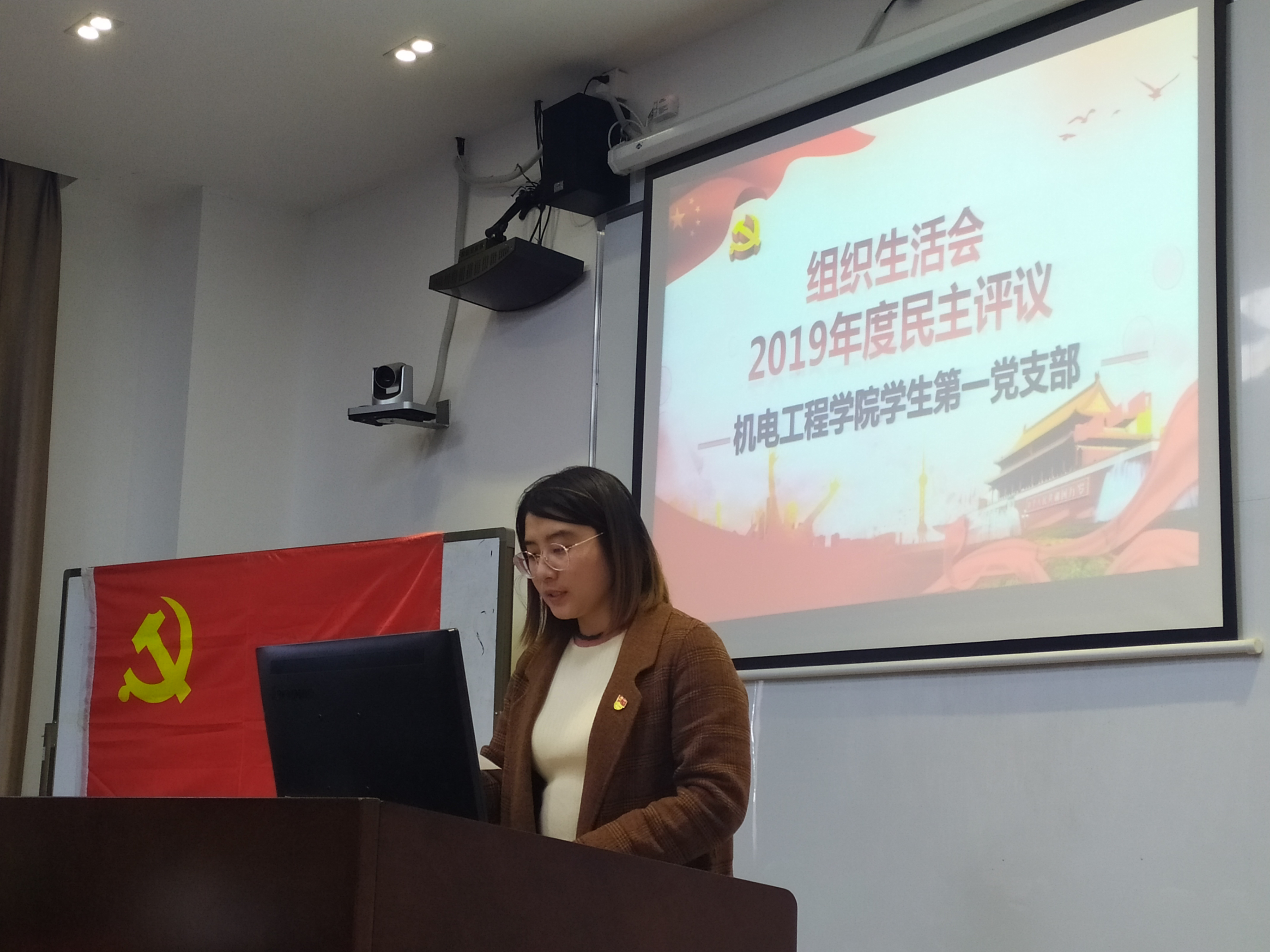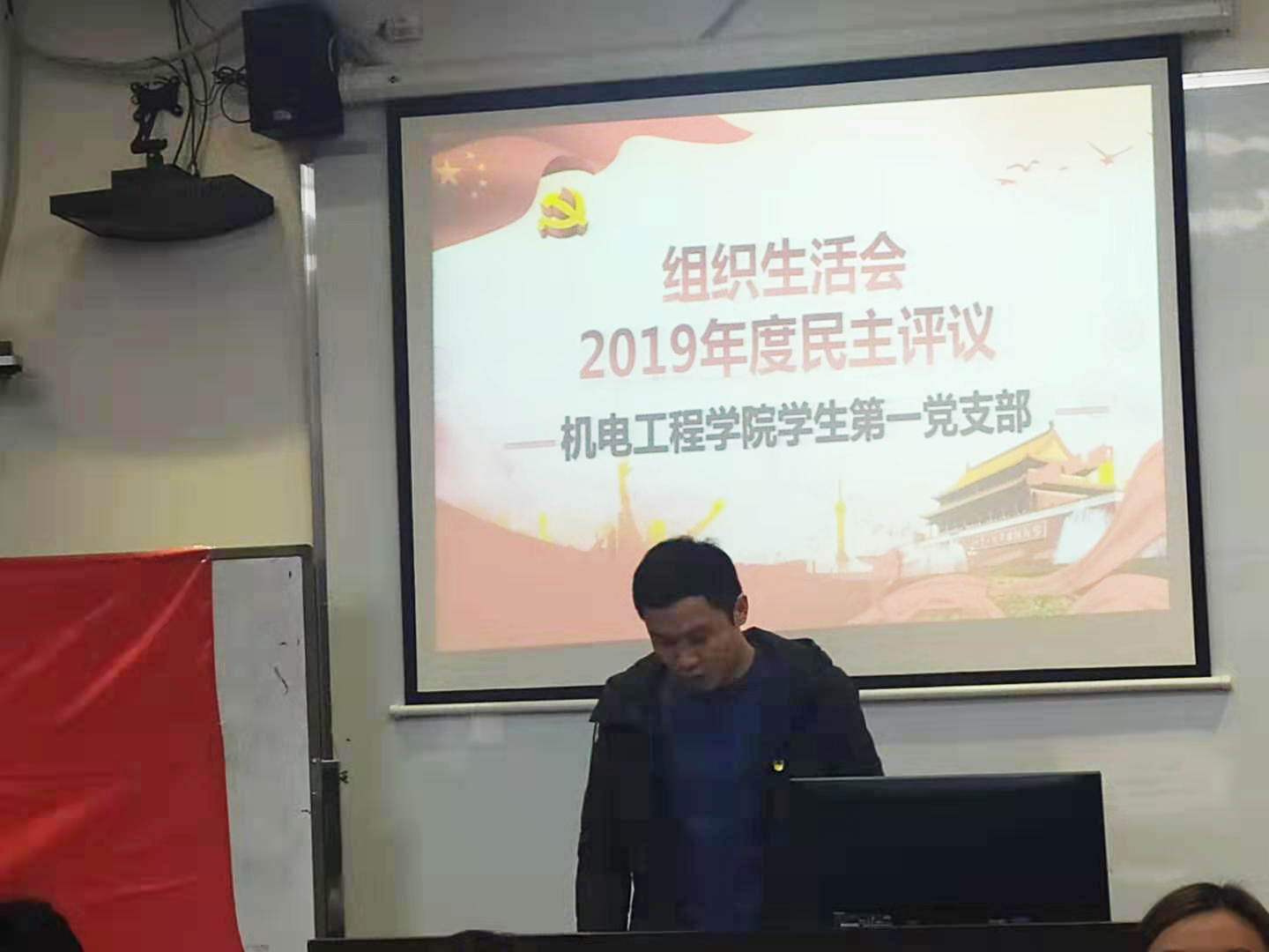 2019年12月9日,机电工程学院学生第一党支部在明德楼1区214召开组织生活会,开展批评与自我批评,进行2019年度民主评议。