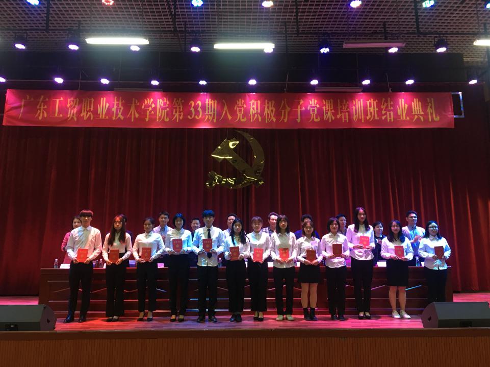 在本次党课培训中涌现出43名学习刻苦、考试成绩突出的优秀学员,刘万裕副校长宣读《关于表彰第33期入党积极分子党课培训班优秀学员的决定》(粤工贸院党校[2019]1号),并为他们颁发了优秀学员荣誉证书。