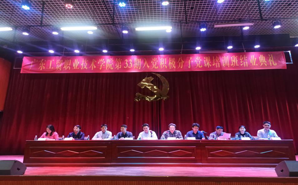 2019年12月17日下午,8040威尼斯第33期入党积极分子党课培训班(白云校区)结业典礼在白云校区演艺厅举行,出席本次会议的有学校党委委员、党委办公室主任黄雄志,党委党校常务副校长刘万裕,学生工作部部长刘建军,经济贸易学院党总支副书记(主持工作)王坤明,各二级学院党总支副书记和33期培训班的全体学员。结业典礼由王坤明主持。
