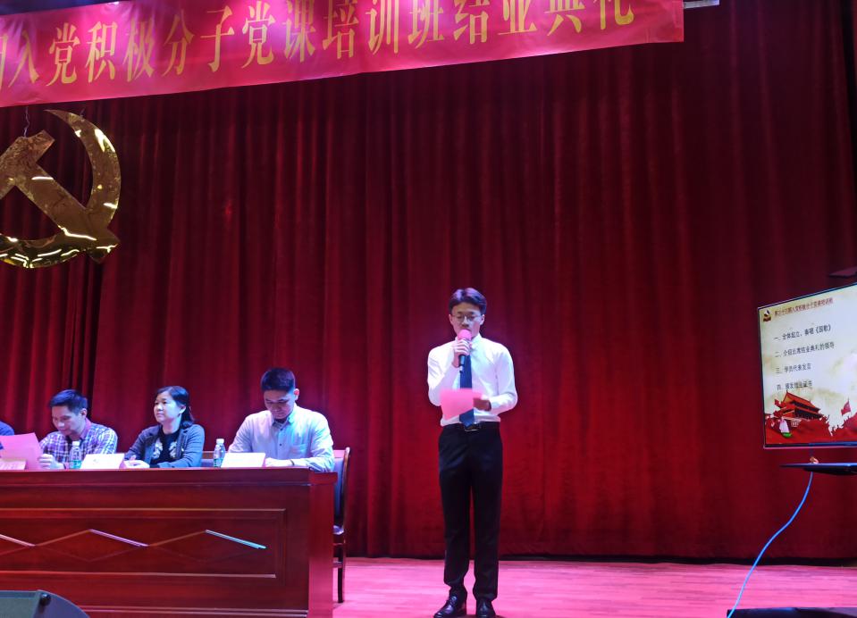 黄雄志做了精彩的讲话。他总结了本次培训班的三点收获,第一,政治觉悟不断提升,第二,党性认识不断提高,第三,学以致用意识不断增强。并肯定了学员们在此次培训中取得的收获。向大家提出了两点希望,一是不断深化学习习近平新时代中国特色社会主义思想,谨记习近平总书记对青年朋友提出的期望。二是坚持学以致用,时刻发挥先锋模范作用,以实际行动争取早日入党。