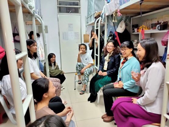 检查调研宿舍过程中,学院领导与同学们促膝而谈,详细询问大家学习和生活点滴,征求大家对宿舍管理和服务的意见,并叮嘱同学们在宿舍要注意人身财产安全,在学习的同时要注意提高自我保护的意识。与同学们就实习就业、日常学习、消防安全等进行交流。