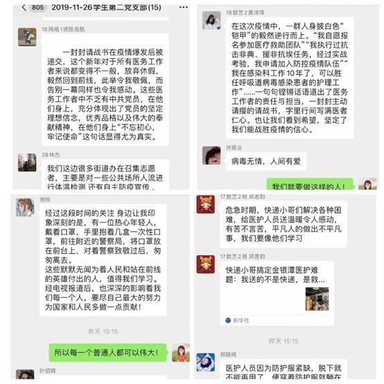 在专题四部分,支部成员分享了自己在这段时间的思考与感悟。