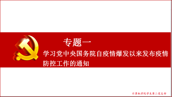 首先,俞雪娇带支部成员共同学习了《中共中央组织部关于坚决贯彻落实习近平总书记重要指示精神在打赢疫情防控阻击战中积极主动履职有效发挥作用的通知》和《习近平在中央政治局常委会会议研究应对新型冠状病毒肺炎疫情工作时的讲话》两篇文章。