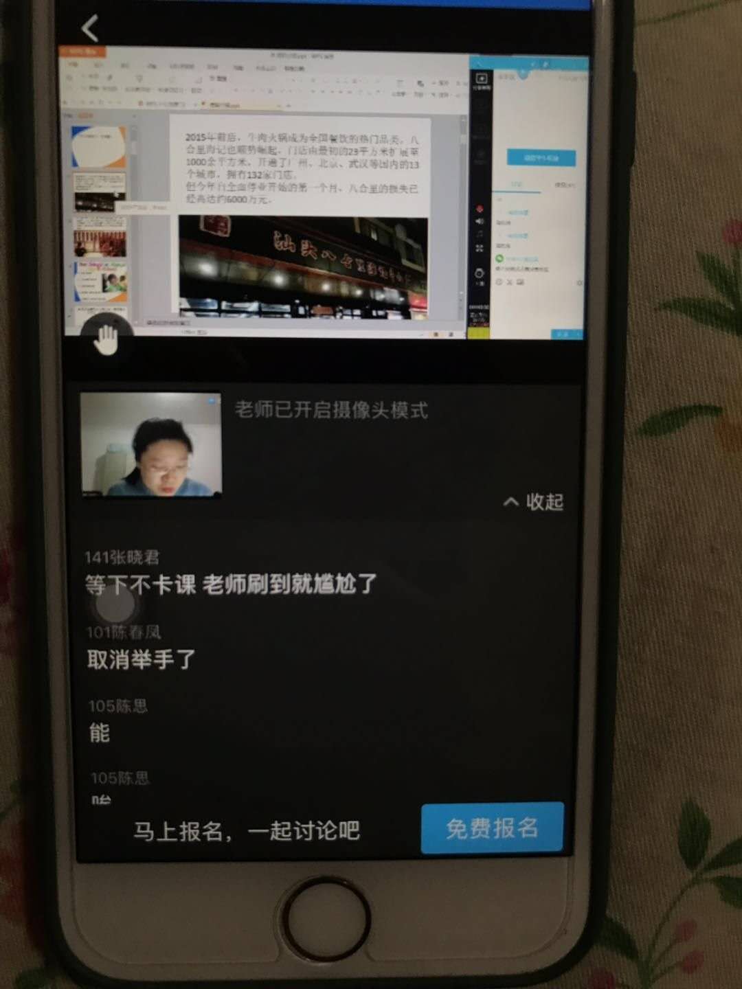 魏湘辉:第一次直播感觉像打仗,虽然了准备了很久,但还是状况百出,包括平台网络都有意想不到的问题。还好,同学们很支持,早上8点的课程到课率也很满,看到同学们都在讨论区积极发言,全程直播的苦与累也都烟消云散了。