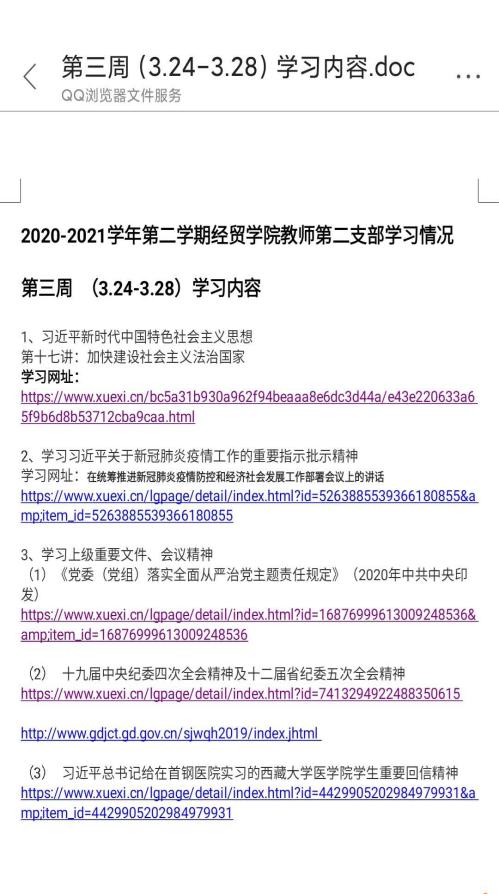 为贯彻落实《中共广东省委教育工委关于高校基层党组织在疫情防控期间开展组织生活的通知》要求和“三会一课”制度,切实发挥党支部的战斗堡垒作用和广大党员教师在疫情防控中的先锋模范作用,经贸学院教师第二党支部近期开展“云”支部活动。