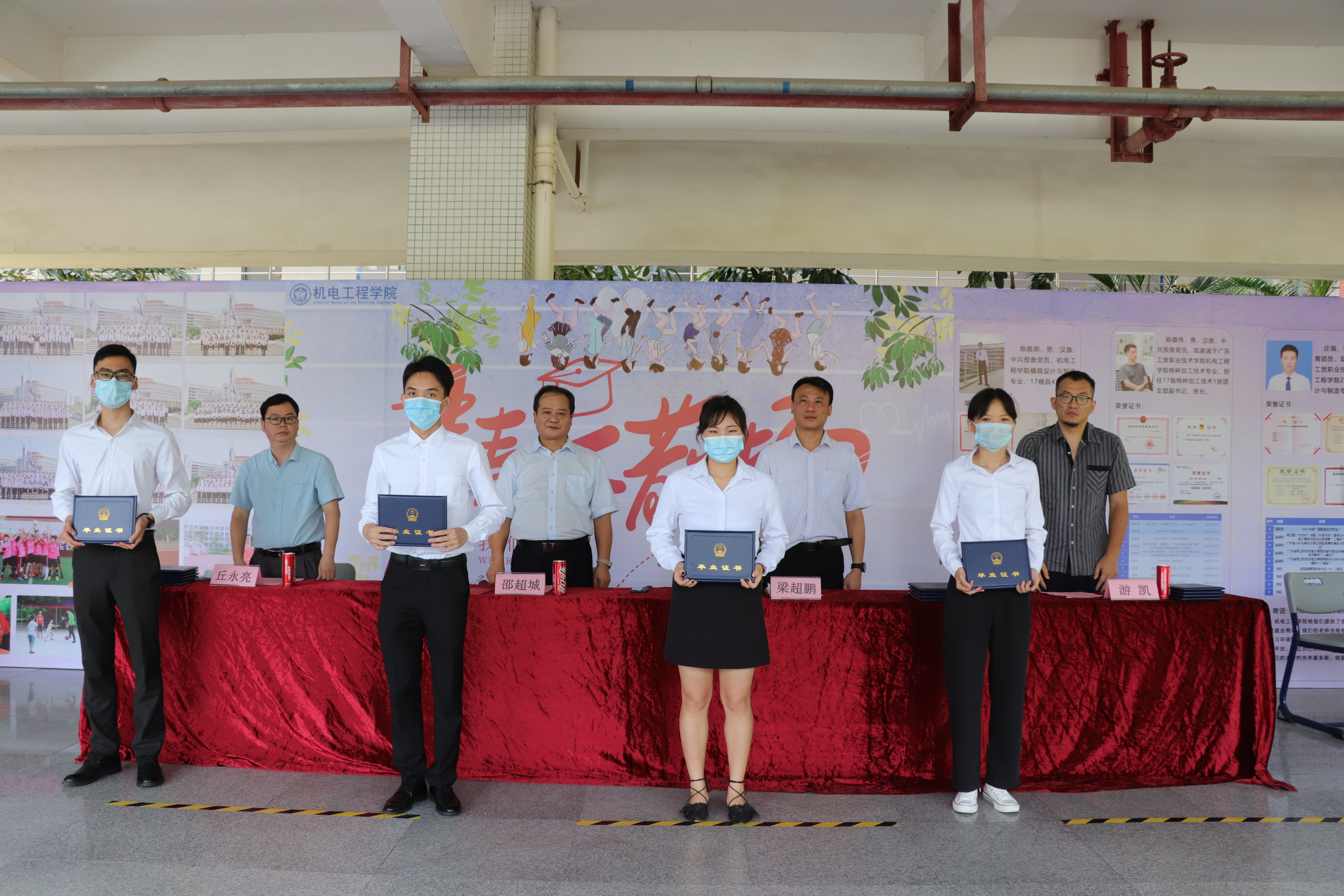 接着,丘永亮宣读2020届优秀毕业生、工贸技师表彰文件。并由出席毕业典礼的学院领导班子将获奖证书及毕业证颁发给学生代表。