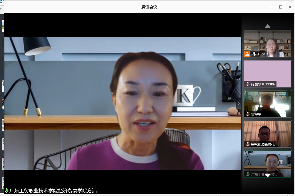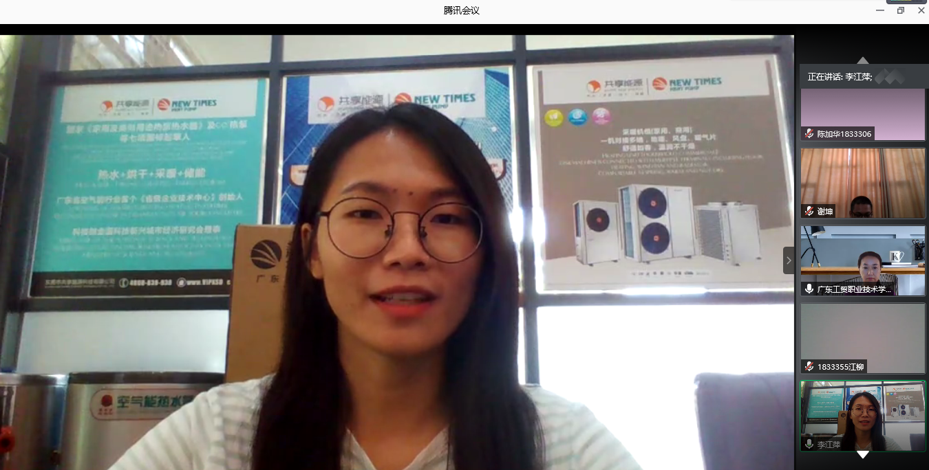 在学校强力推进“双高”计划建设,推动产教学融合发展的契机下,为更加全面地提升人才培养水平,培养更多跨境电商行业实用性人才,加强学院与企业之间的深层次合作,由经济贸易学院国贸专业组织的“共享能源”跨境电商精英班宣讲会于2020年6月14日上午在线上举行。参加宣讲会的有:经贸学院副院长方洁、经贸学院商贸系主任蒋晶、国贸专业专任教师及8040威尼斯经贸学院18级、19级国贸专业同学;企业方出席嘉宾包括东莞市共享能源科技有限公司总经理谢坤、东莞市共享能源跨境电商专员曾平平、李江萍。其中,曾平平、李江萍为17级国贸专业毕业生,现就任于东莞市共享能源科技有限公司。此次宣讲会由经贸学院商贸系蒋晶主任主持。