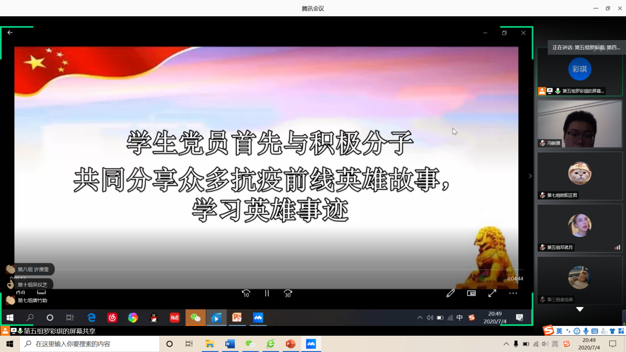 7月4日晚,应用外语学院“党群服务中心‘疫’时一周e学表彰大会”线上举行,应用外语学院党总支书记李德富、党总支副书记罗春科、指导老师冯锐骐、获奖代表、党积极分子等一同参加本次大会。