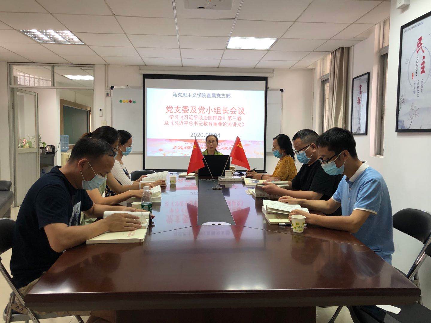 各支委和党小组组长表示一定会结合会议精神,深入学习贯彻习近平总书记重要讲话精神,坚持党的领导,加强理论学习,将会议精神落实到教学和宣讲工作中,努力推进疫情防控下新学期马院直属党支部工作的有效开展。