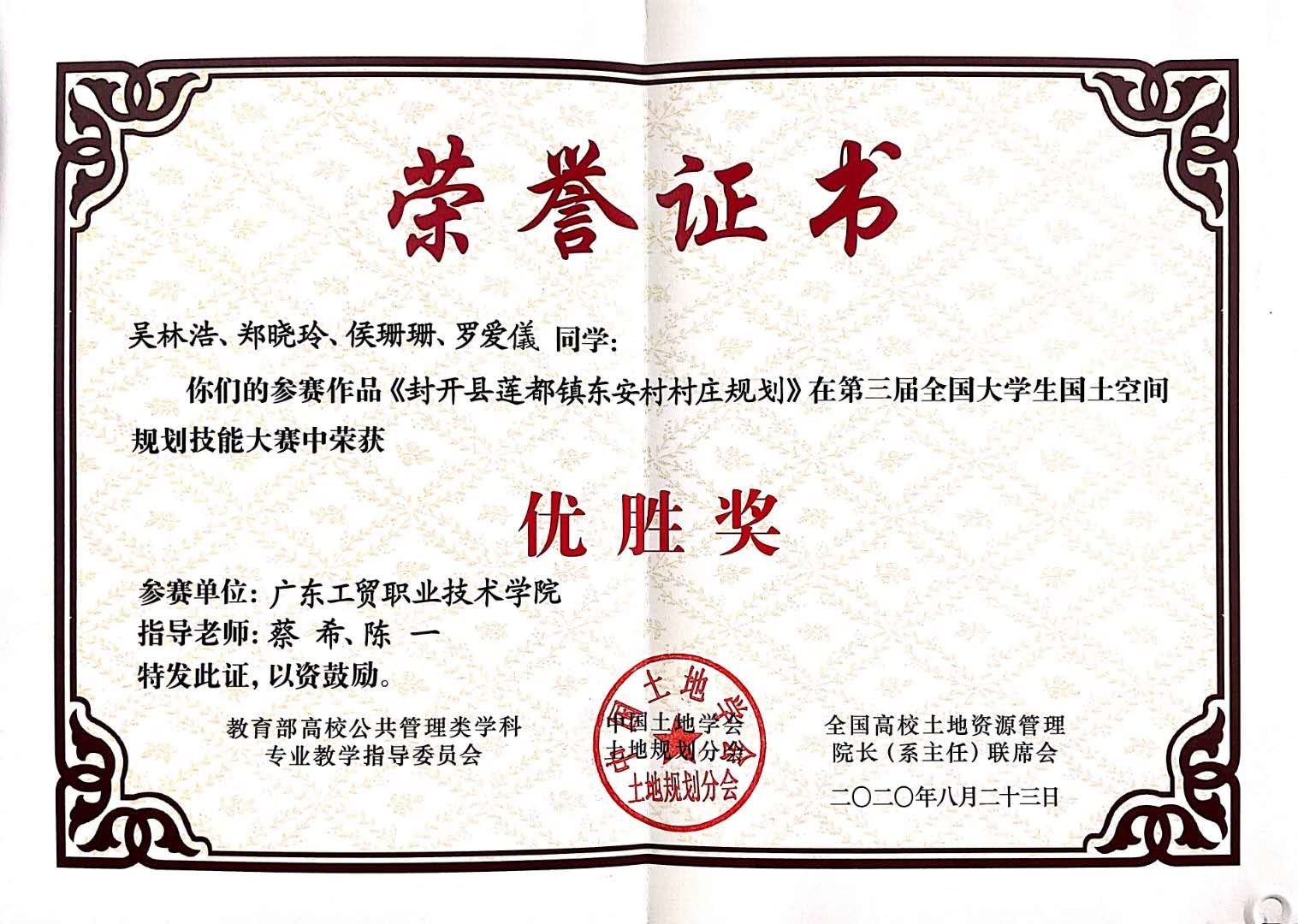 由教育部高校公共管理类学科专业教学指导委员会、全国高校土地资源管理院长(系主任)联席会、中国土地学会规划分会主办和中国地质大学(北京)承办的第三届全国大学生国土空间规划技能大赛于2020年8月举行。