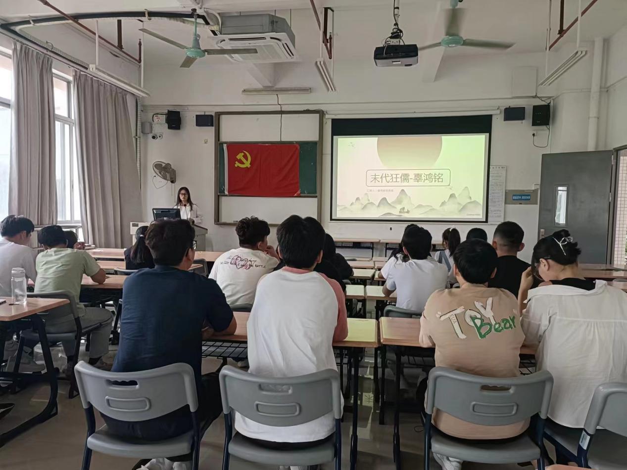 随后,李贤柔同志向大家介绍了清朝时代精通西洋科学、语言兼东方华学的“中国第一人”辜鸿铭。她从辜鸿铭先生的事迹、人物评价以及人物精神依次进行讲解,并倡导大家要学习老先生的民族自信与爱国精神。