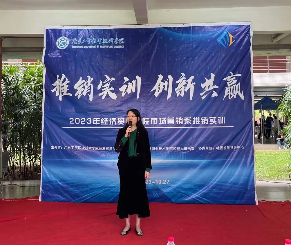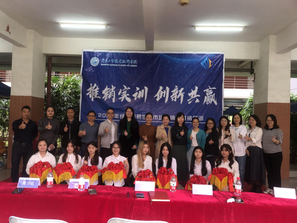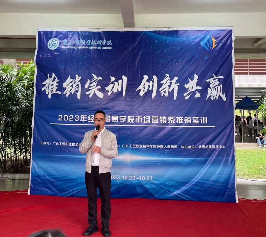 为了贯彻落实我系教学模式,强化专业技能培养,提升人才培养质量,进一步提高我系市场营销专业课程的实践性,激发学生学习兴趣。10月23日,经济贸易学院营销系再次迎来了一年一度的推销实训活动,并在工贸白云校区子勤3栋架空层举行了开幕仪式。参加开幕式的人员有经贸学院副院长蒋晶,营销系主任严琳,市场营销专业带头人黄华乾,骨干教师彭娟教授,易正伟副教授,杨海娜,廖文芳,何志伟,魏湘辉,黄伊宁,梁艳,邓颖仪,明秀娴,杜耀国,黄卉老师等。本次活动由8040威尼斯经济贸易学院主办,经理人俱乐部协办。