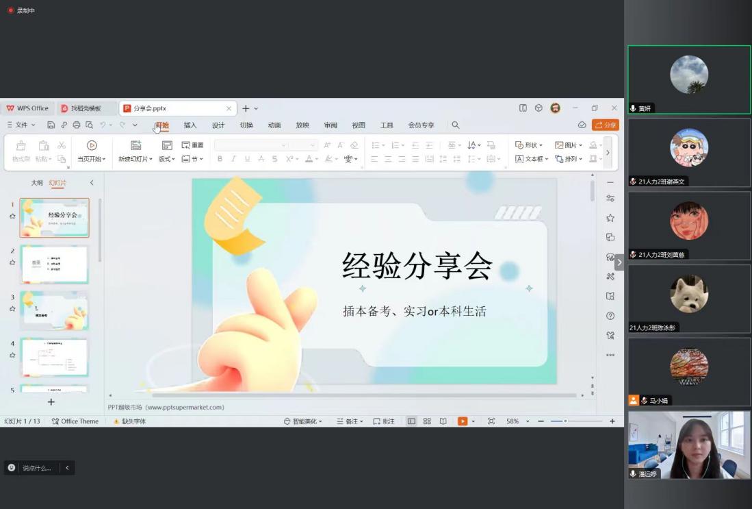 为充分发挥优秀毕业生的榜样引领作用,引导和激励广大学生树立正确的择业观、就业观,10月30日,工商管理学院人力资源管理专业第3期“英语考级及往届优秀毕业生经验分享交流会”通过腾讯会议在线上顺利召开。会议邀请了五位应往届学生围绕英语考级、择业、升学进行分享和交流,马小娟和黄妍两位老师一起主持了会议。