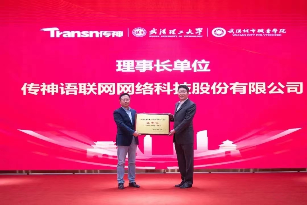 出席和莅临现场的领导和嘉宾主要有中国外文局翻译院副院长、中国翻译协会翻译技术委员会副主任委员王飞,湖北省商务厅服务贸易处副处长葛怀,武汉市教育局一级调研员李万平,武汉市商务局服务贸易处副处长彭皓园;还有共同体牵头单位的武汉理工大学党委副书记、纪委书记夏江敬,武汉城市职业学院党委副书记、校长张英,传神语联网网络科技股份有限公司创始人兼董事长何恩培。以及来自智能语言服务行业的企业、高校、科研机构等单位的二百余位代表共济一堂,现场气氛热烈。在与会成员的共同见证下,大会表决通过了《全国智能语言服务行业产教融合共同体章程》,确立了共同体组织机构名单,举行了第一届理事单位、常务副理事单位、副理事单位的授牌仪式和共同体启动仪式。