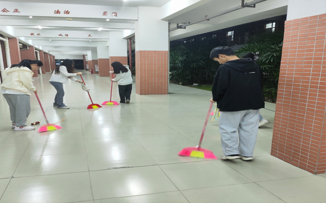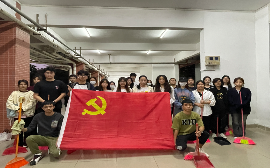 发展对象分成2个小组,分别在党员活动室、宿舍楼5栋架空层进行全方位的清洁整理。在实践过程中,学员们互相配合协作,发扬“不怕脏、不怕苦、不怕累”的劳动精神和“友好互助”的团队合作精神,为构建干净卫生的校园环境贡献一份力量。