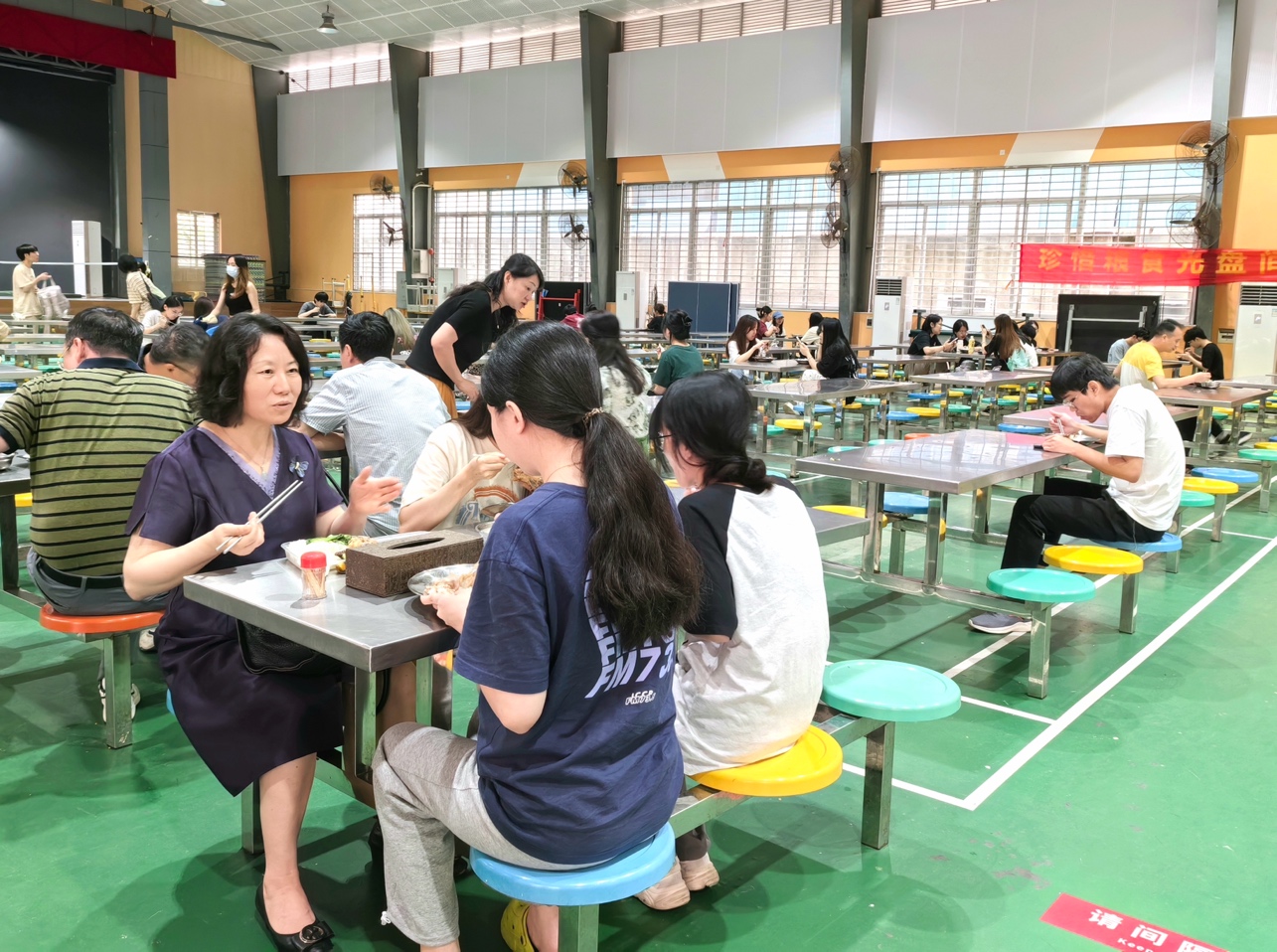 此外,赵红一行还走访了荔湾校区的图书馆,到荔湾校区临时食堂进行陪餐,期间与工作人员以及学生展开了亲切交流。