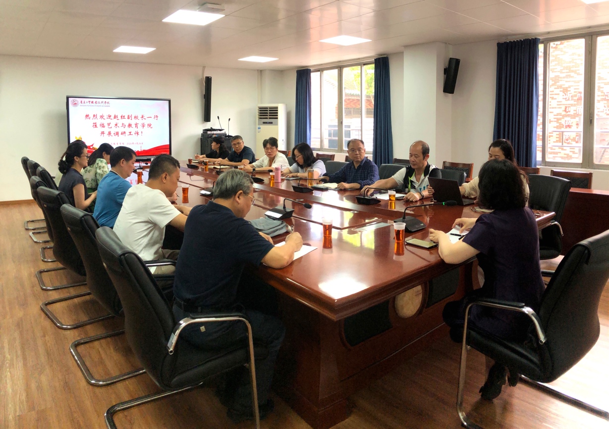4月24日,副校长赵红带领科研处、对外交流合作处、培训学院和图书馆等部门负责人及相关人员,深入艺术与教育学院进行调研,学院党政班子成员、院办、学工办主任及教师代表参加了座谈交流。