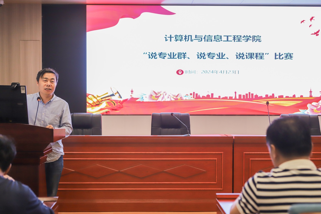 为促进计算机与信息工程学院专业(群)建设,推进课程改革,提高教师课程建设、教育教学等综合能力,提升人才培养质量, 423日下午,计算机学院开展了2024年度“说专业群、说专业、说课程”比赛,计算机学院院长余棉水、书记张宁担任评委组组长,副院长单家凌、副院长鲁庆、副书记张艳、各系主任及专业带头人为评委组成员,计算机学院全体教师现场观摩学习。